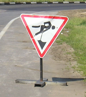 Right at the turn from Vladimir, Russia, to Suzdal, Vladimir region, there is such a sing telling probably the following: “Here they stick and hang on the sticks”. 😊