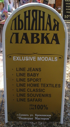The textile masters from the ancient Russian town of Suzdal had sincerely tried to speak English properly!.. 😊 They just wanted to say they sold linen things, and that their models are exclusive!.. 😊