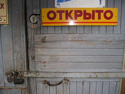 On my way to Nizhny Novgorod, Russia, there was a stop in Vyazniki, Vladimir region, where I wanted to get into a food store whose door label said it was “OPEN” but two locks said it was closed…