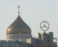 My friend Andrei discovered in Moscow, Russia, this unusual view, a combination (or opposition?) of church power and industrial power.