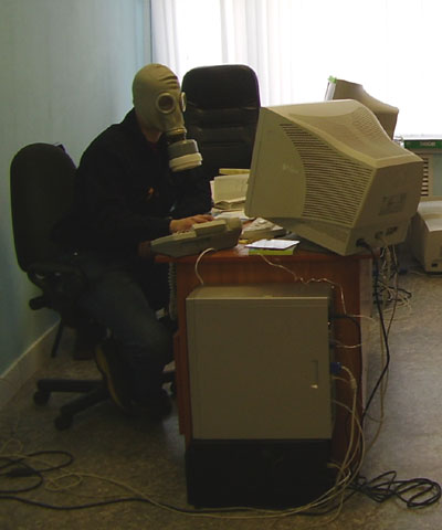 A friend of mine, Nikolay, who is a system administrator, sent me this picture of how Russian computer experts continue working even when they are gas-attacked. 😎