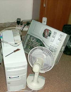 Again my colleague Pavel took a picture of typical system administrators' environment with a great cooler for a great server 😁, and a dead mouse hanging in the background.