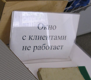 - Когда я вчера в несколько минут седьмого (вечера) прибыл в банк (он ещё работал) с целью обмена валюты и получил квитанцию от автомата электронной очереди, долго бродил по залу в ожидании своего вызова, пока наконец случайно не узнал у консультанта, что обменом валюты занимается только окно № 8, которое работает до шести (о чём нигде в банке написано не было), и автомат эл. очереди об этом не знает (у него вообще обмен валюты и касса находятся на одной общей кнопочке). 😮 О необходимости исправить эту глупость я тут же сообщил начальнику отдела по работе с физическими лицами – она кивнула (но вряд ли исправят).