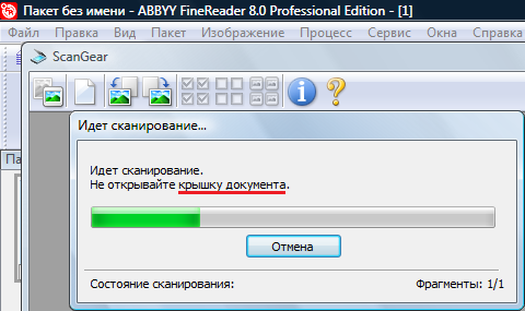 То ли программа распознавания текста ABBYY FineReader (между прочим, мировой лидер российского производства), то ли программное обеспечение (драйвер?) сканера считает, что крышка есть не только у сканера, но должна быть и у документа. 😁
