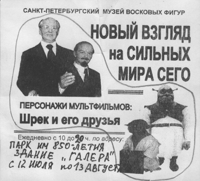 Санкт-Петербургский музей восковых фигур – частый гость в нашем городе Владимире (впервые я побывал на его выставке ещё учась в школе), но только в этом году мой коллега Илья заметил, что в попытке представить популярных героев современности музей решил приписать к друзьям болотного великана Шрека не только магистра Йоду (выражаться красиво мастера 😊) из «Звёздных войн», но и Владимира Ильича Ленина напару с Михаилом Сергеевичем Горбачёвым! 😊