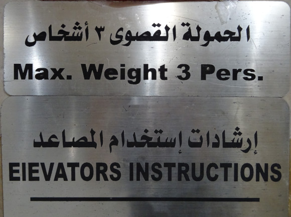 Максимальный вес (max. weight), точнее, масса в Хургаде (Египет) измеряется не в килограммах, а в человеках (3 persons) 😮 потому, что он не для лифта, который по-английски должен называться “elevator”, а для “eievators” 😁, что можно перевести на русский примерно как «иифты». 😂