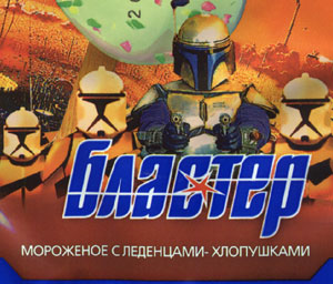 Белгородский хладокомбинат, выпускающий продукцию под маркой «Бодрая корова», напугал нас подписью к своему мороженному «Бластер», которую мы обнаружили уже дома: «Мороженое с леденцами-хлопушками», – однако в процессе съедения во рту ничего не взрывалось, да и вообще мы остались живы! 😊 Как выяснилось позднее, хладокомбинат ради привлечения внимания покупателей даже не постеснялся для обёртки своего мороженого украсть изображения космических бойцов из знаменитых «Звёздных войн»! 😎