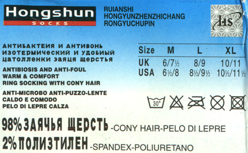 Трудолюбивые китайцы продожают радовать мёрзнущих русских тёплыми носками, точнее «цатолленки заяця щерстья», обладающими такими замечательными свойствами, как, например, «антивонь». 😊