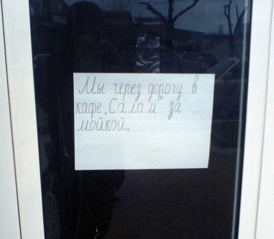 Мой брат Евгений из г. Дербент (Дагестан) удивляется: чтобы зайти в кафе и перекусить, надо ещё найти обслуживающий персонал, который сидит в другой кафешке! 😮 Заботливо написаная бумажка сообщает, где стоит его искать. А в своем заведении они почему не питаются? 😉
