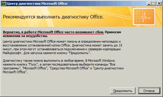 ➔ Вероятно, в работе Microsoft Office часто возникают сбои ➔