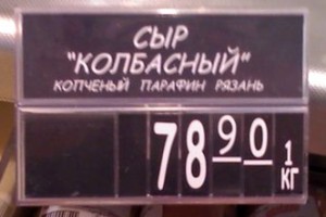 Павел пишет: снято в гипермаркете «Глобус»; «сыр колбасный, копчёный» я бы ещё купил, но сыр «сыр «Колбасный», копчёный парафин» 😮 – вряд ли. 😊