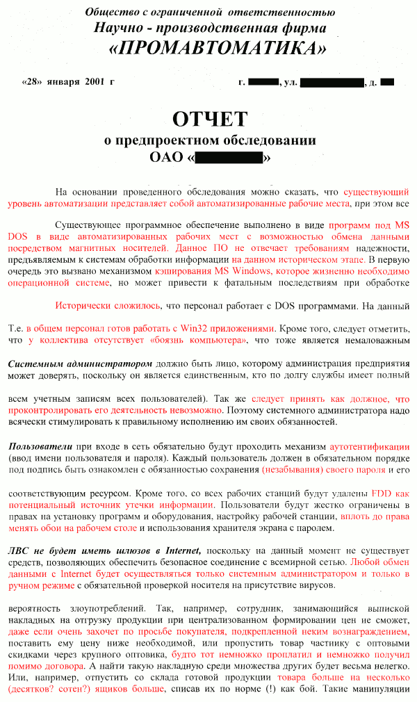 Вот такие «отчёты о предпроектном обследовании» мне иногда приходится читать… 😊 Вроде серьёзная фирма писала, а такую чушь… или это было нормально «на том историческом этапе» (2001 год)?.. 😁