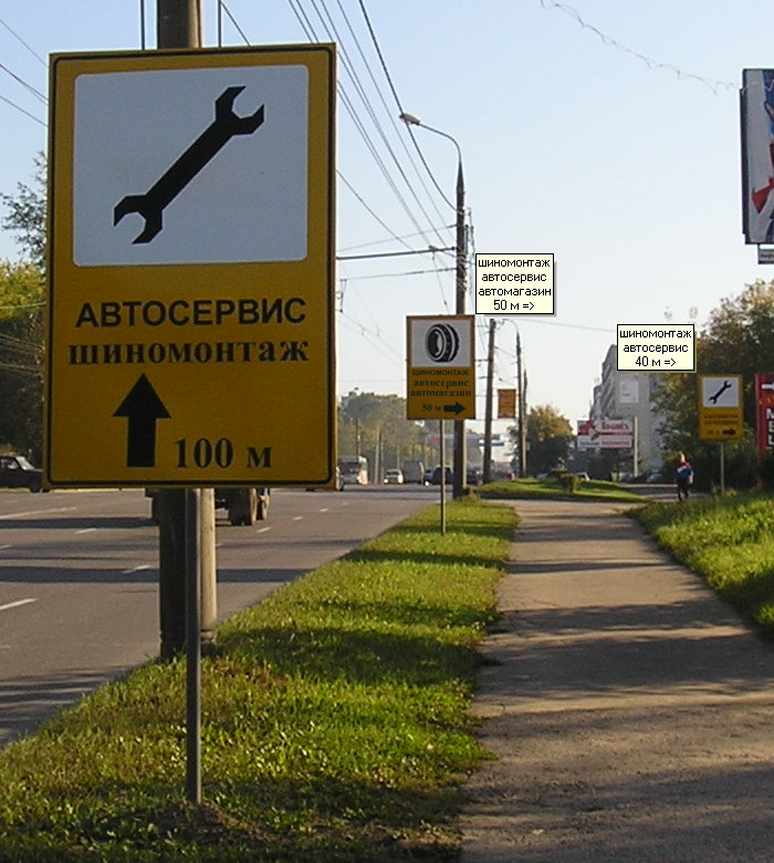 ➔ Шиномонтаж через 100 м, 50 м, 40 м ➔