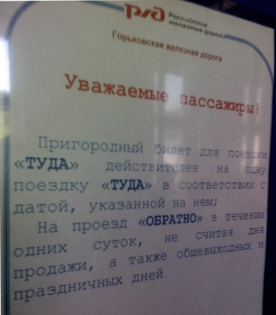 Павел: сфотографировал на железнодорожном вокзале во Владимире, и вот что больше всего интересно: «туда» – это куда? 😊 Постеснялись конкретизировать? 😊