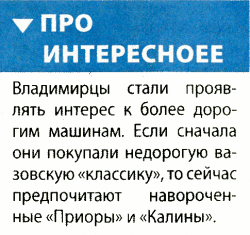 Видимо, во вставке газеты «Про город Владимир» кто-то не случайно опечатался в заголовке: «Про интересное-е», – ведь это действительно интересно-о, какие во Владимире бывают «навороченные» машины! 😁