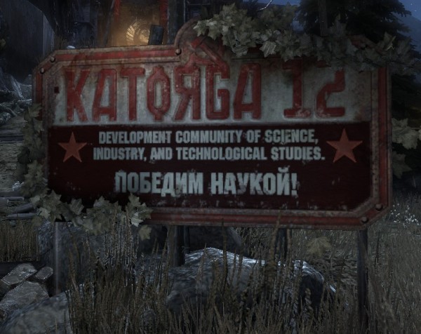 Павел: «антисоветская» игра «Сингулярность» (Singularity), секретный научный центр «Каторга-12»: «Победим наукой!» – для непонятливых американцев расшифровка выше, правда, несколько длиннее. 😊