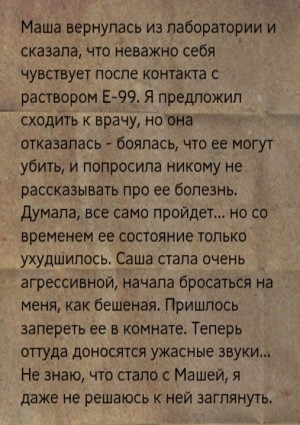 Павел: «антисоветская» игра «Сингулярность» (Singularity), секретный научный центр «Каторга-12»: оставляя без комментариев писательский талант авторов игры, замечу, что, судя по этой записке, русские имена «Саша» и «Маша» с их точки зрения эквивалентны. 😁 Ну как, «Саша» и «Александр», скажем.