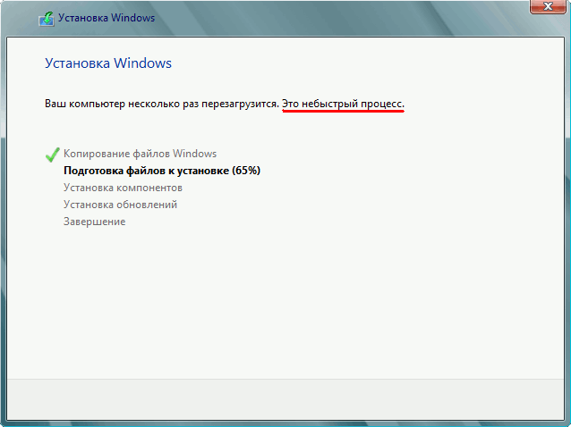 Павел: установка очередной предварительной версии Windows 8 – Windows 8 Release Preview. Раньше Microsoft пытался успокоить нетерпеливого пользователя фразами типа «это может занять несколько минут», теперь же они пишут честно: «Установка Windows. Ваш компьютер несколько раз перезагрузится. Это небыстрый процесс». 😊
