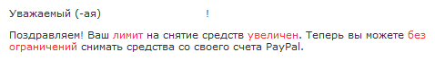 Вот пойди пойми этот PayPal, что он имел в виду в таком вот сообщении?.. Что он увеличил лимит до бесконечности? 😊