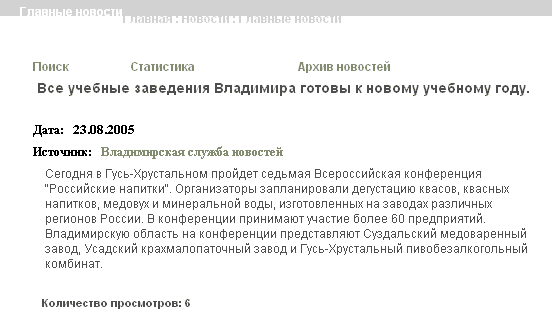 Мой коллега Виталий заметил на одном из владимирских новостных сайтов WEC.ru, что благодаря VII Всероссийской конференции «Российские напитки» все учебные заведения нашего города уже «готовы». 🥴 Для тех, кто не понимает, насколько это важно, добавлю: первые строчки обращают ваше внимание на то, что это «Главные новости – Главная : Новости : Главные новости». 🧐