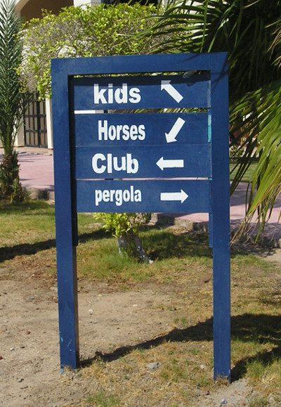 Вполне понятные указатели на территории египетских гостиниц… ну, если бы лошади умели читать. 😊