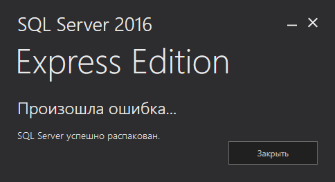 Программа установки SQL Server 2016 Express Edition считает, что если «SQL Server успешно распакован», то это ошибка. 🤪
