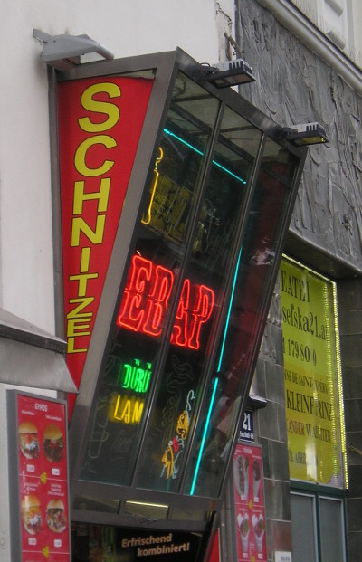 На самом деле это вывеска кебаб-кафе в Вене, просто мы стояли у неё под «неправильным» углом, поэтому получился “ebap”. 😳