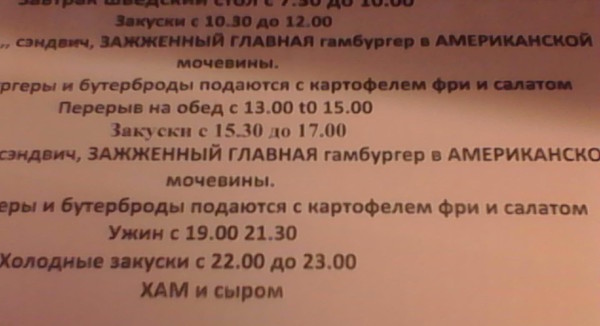 Это – не бред сумасшедшего, а информация для посетителей ресторана одного из кипрских гостиниц. 😊 Ребята искренне старались написа́ть по-русски. 😁