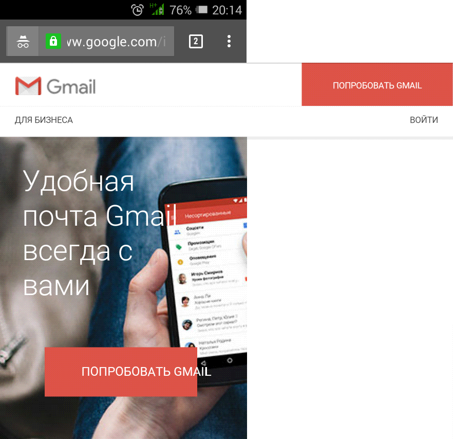 Google очень много говорит об адаптивном дизайне сайтов и веб-приложений. Более того, очень много делает для того, чтобы такого дизайна стало больше, и Интернет стал «дружественнее» к стремительно растущему сегменту мобильных устройств и пользователей. Он и меня в своё время вдохновил на то, чтобы полностью переделать дизайн этого моего сайта, сделав его адаптивным. Но почему-то так получается, что проекты самого Google зачастую демонстрируют нам «сапожника без сапог», в частности, вот Вам отображение Gmail у меня на смартфоне. 🤦 После входа всё нормально, адаптивно, но до входа почему-то вот так. Хуже этого только неадаптивность Google Contacts.