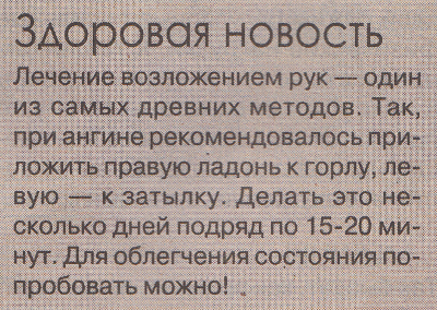 В редакции журнала «Народный доктор» (№ 21 за 2013 год) явно перестали надеяться на нацпроект «Здоровье» и решили лечиться «проверенными народными» способами. 😮