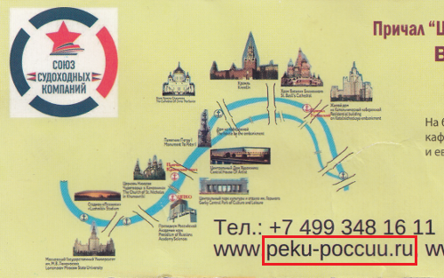 Увидев на билете москворецкого теплохода адрес сайта «Союза судоходных компаний», я не сразу сообразил, что это не «пеку-поккуу.ру» 😮 (латиница ведь), а «реки России». 😊