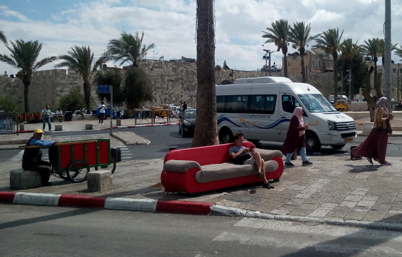 Вот что мне точно понравилось на улицах Иерусалима, так это вот этот диван на перекрёстке 😮 – можно посидеть, отдохнуть…