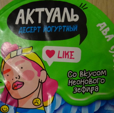 Может, изображённая на этом йогуртном десерте тусовщица и знает, каков вкус зефира с инертным газом, но у меня вот так и не получилось представить… 😛