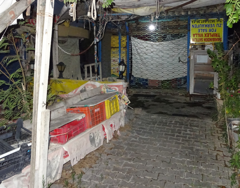 Тот, кто сможет прочитать объявление о продаже кверх ногами, то узнает, что продаётся не заброшенная овощная/фруктовая лавка, а триплексная вилла. 😮