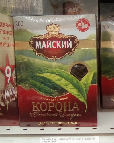 С появлением коронавируса CoViD-2019 и всеобщей истерией вокруг него стало совершенно неважно, что рукописным шрифтом написано под словом «Корона» в названии этого «Майского» чая. 😈
