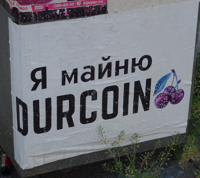 Что значит «майнить» (mine), я знаю, а вот что за такая криптовалюта, DurCoin (и почему «дурь»), не знаю, равно как и то, зачем вообще сие утвердительное предложение, наклеенное в Питере на мусорном ящике. 🤔