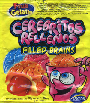 Все, кто смотрел фильм «Ганнибал», наверняка запомнили отвратный эпизод с поеданием мозгов… А вот кондитеров из Аргентины это ничуть не смущает – они выпустили жевательный мармелад с романтическим названием «Заполненные мозги» (“Filled Brains”) – видимо, чтобы дети были добрее!.. 😈