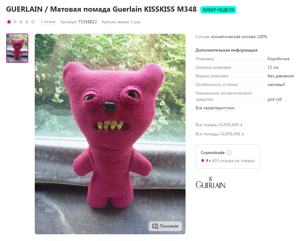 Ирина: ИП Бондаренко Анна Сергеевна aka CosmoTrade на Wildberries издевается над продукцией французской парфюмерной компании Guerlain 😂 (а что, в наше время «параллельного импорта» можно всё – прим. ред.).