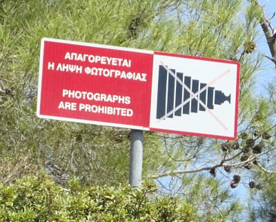 Когда путешествуешь по Кипру в районе каких-то военных баз, приходится фотографировать вот такие запреты фотографировать (απαγορευεται η ληψη φωτογραφιας). 😁