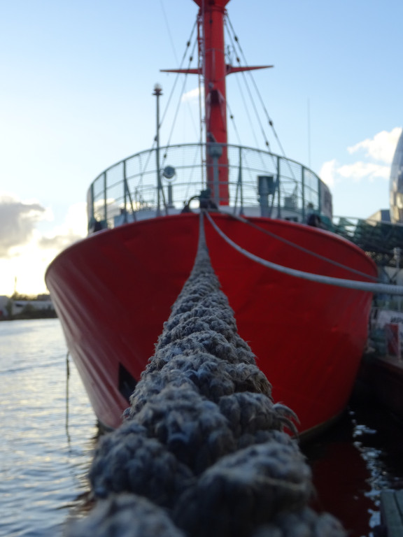 На самом деле средний рыболовецкий траулер СРТ-129 просто соединён канатом с плавучим маяком «Ирбенский» на вечной стоянке на реке Преголе у Музея Мирового океана в Калининграде (Königsberg).