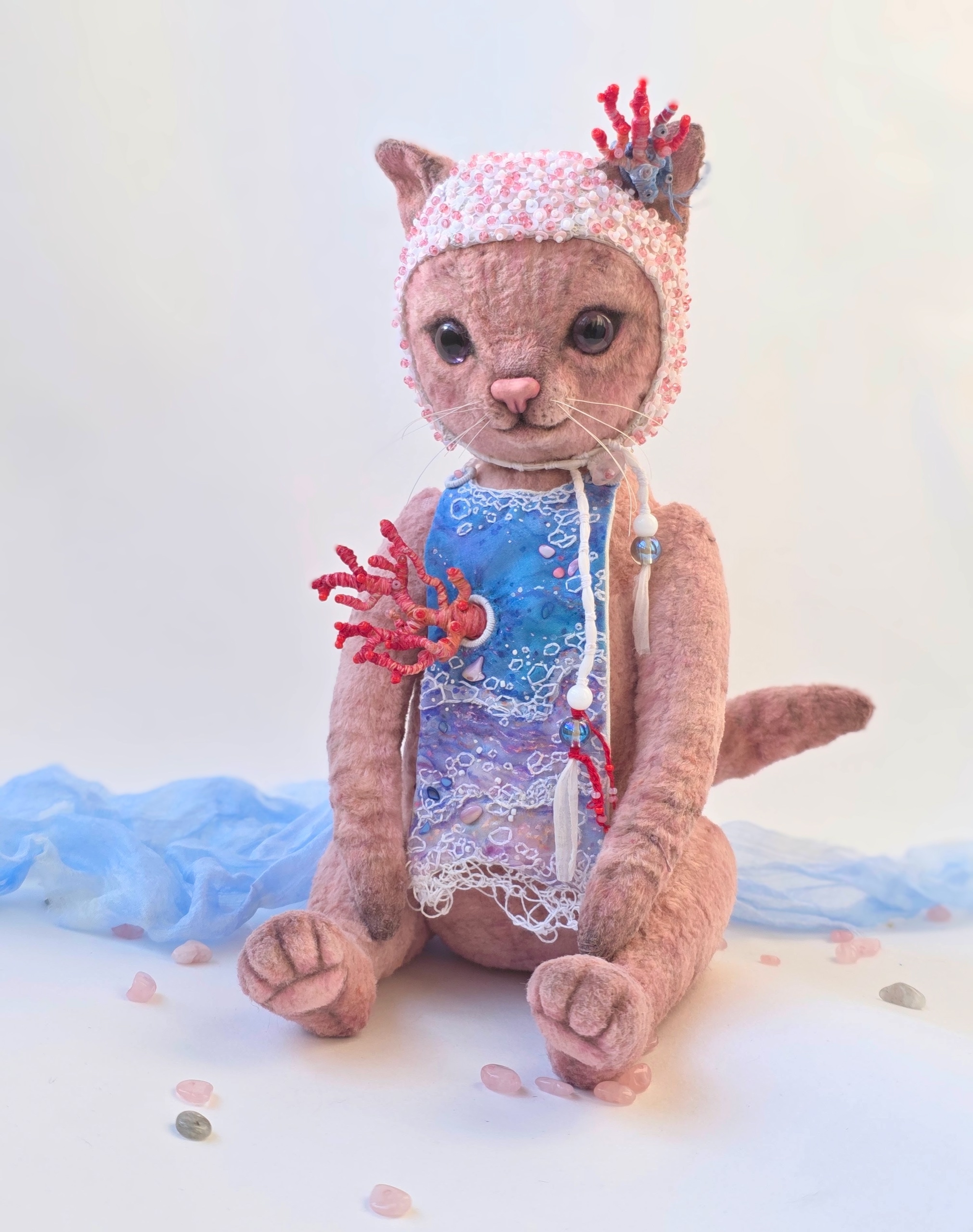 Девочка, любящая прибрежные волны. В них много рыбёшки, а вода мелкая и совсем нестрашная. Шубка из коллекции авторских плюшей от цветной берлоги «Пудра». Отдельная благодарность лошади, подарившей кошке усы.