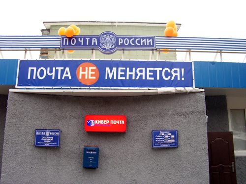 Снаружи многих почтовых отделений висят плакаты «Почта меняется», внутри тоже много красивых лозунгов вроде «В любую погоду, без очередей» и т. п. – на всё это наверняка списывают немаленькие, причём бюджетные, то есть наши с вами денежки… По сути же (отношение к клиентам, качество обслуживания) не меняется ни-че-го уже много-много лет…