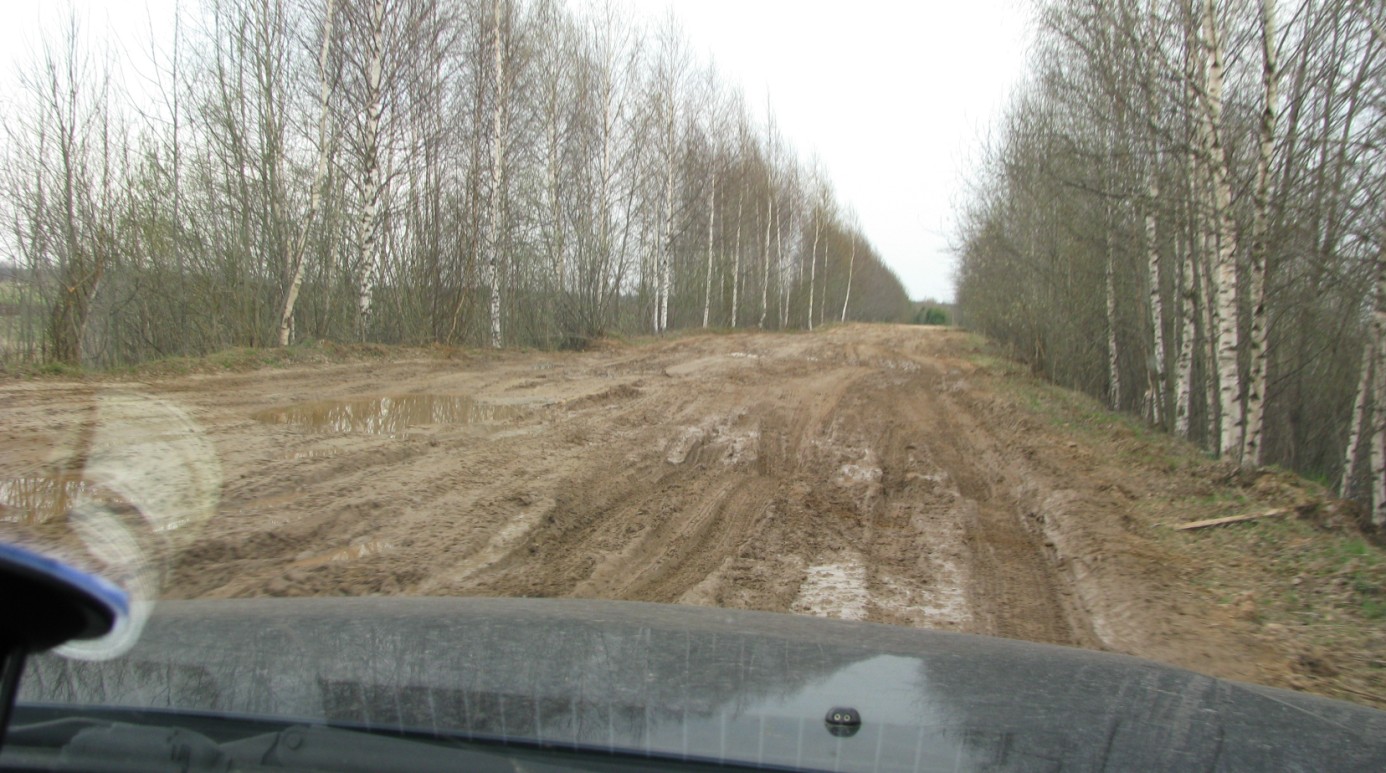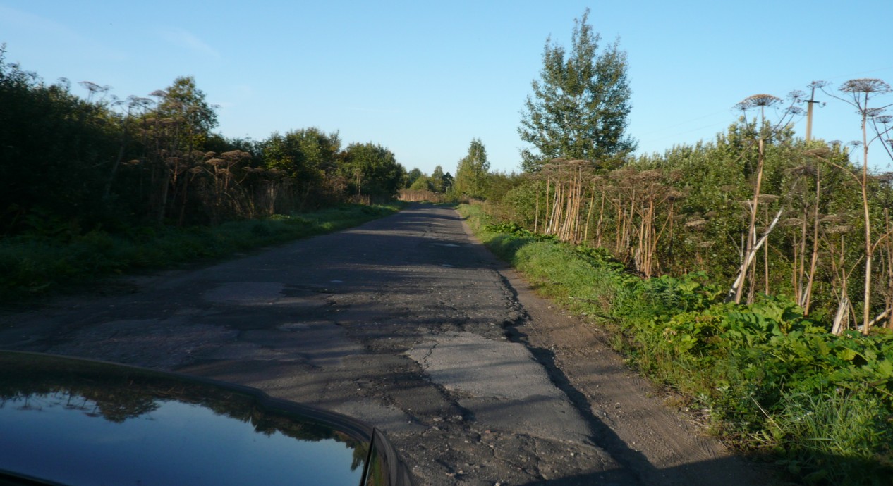 В принципе, там дальше надо просто держаться прямого направления до поворота на Семёновское, по расстоянию я не замерял, но где-то в районе 40 км. Дальше начинается самое интересное. Как только мы повернули на Семёновское, с нормальными дорогами можно попрощаться – ехать теперь предстоит по ухабам вплоть до деревни Леушино.