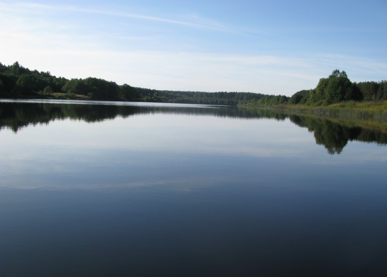 Дальше, никуда не сворачивая, по нормальной песчаной дороге едем до леса, в лесу всё так же прямо через убитый мосток, на котором мы постоянно «скребём пузом», до развилки. Тут поворачиваем направо и едем дальше, дорога делает крюк и ведёт прямёхонько до реки. Там где-то торчит табличка, что проезда нет и «бла-бла-бла», но мы лишь презрительно на него фыркнем, нам виднее. Этот участок дороги не самый приятный в плане наличия луж; когда последний раз форсировали самую глубокую, то «нос» машины ушёл по фары, но в целом проехали без приключений (Лух – привет). Выехали – перед нами река.