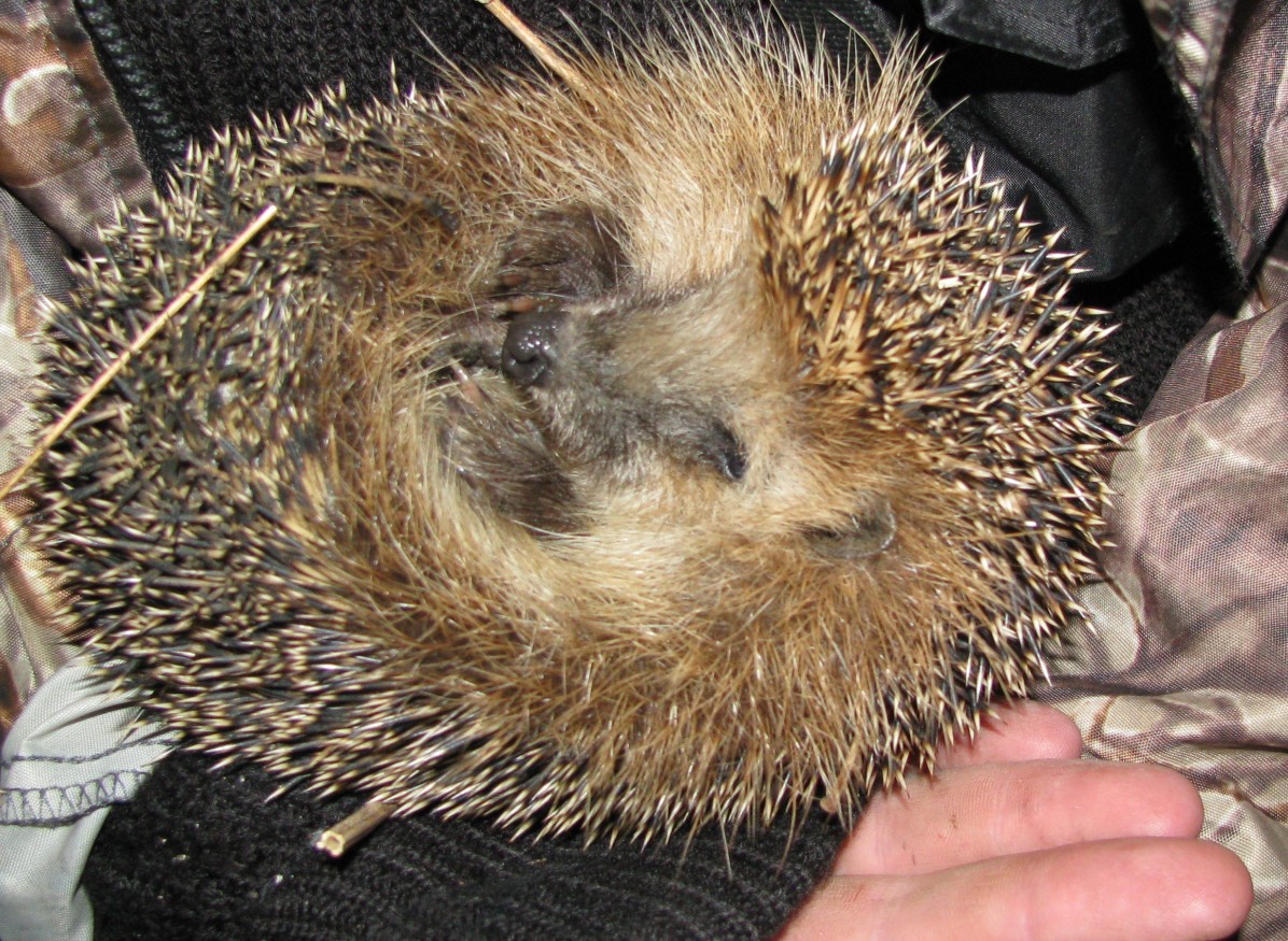 Продукты хранить на земле не рекомендуется. Как-то раз у нас легион ежей унёс в неизвестном нам направлении всю колбасно-сосисочную продукцию. Вот, собственно, один из «преступной группировки»: